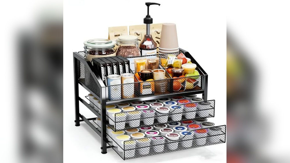 - Versatility in holding various coffee accessories beyond just K-Cups, such as syrup bottles and mugs.